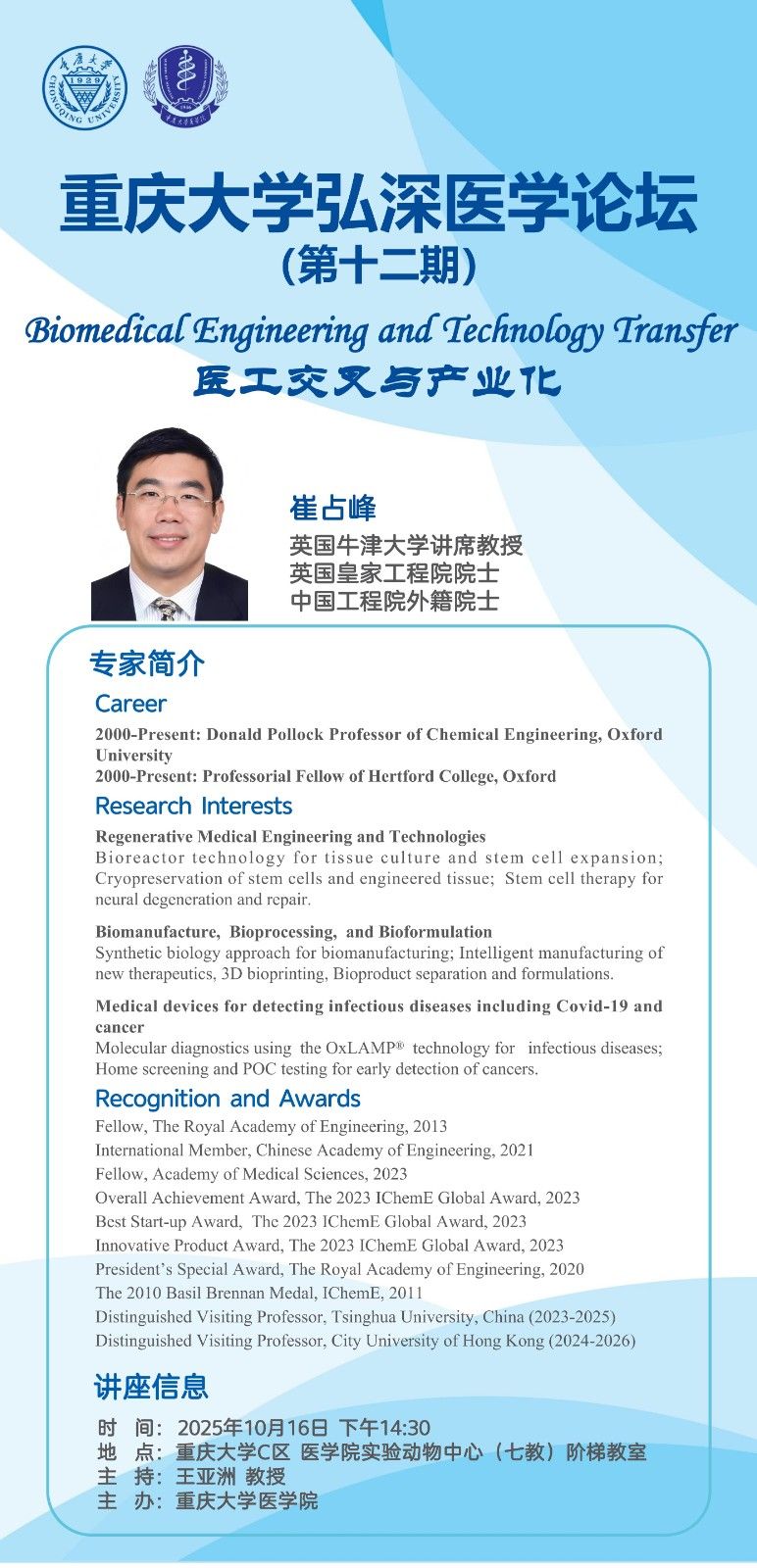 地点 : 沙坪坝校区C校园实验动物中心(七教)阶梯教室